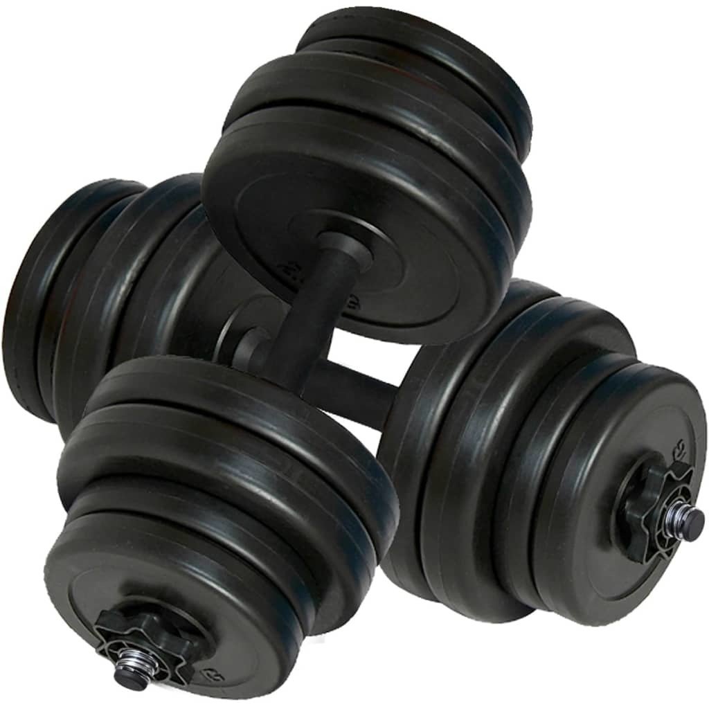 The dumbbells have anti-slip plastic handles so you will be able to work-out without having to worry that the dumbbells will slip from your hands and fall. The screwcaps have star bolts to make sure that the weight plates are always mounted firmly and secure on the bar. The bar of the dumbbell is made of strong metal.